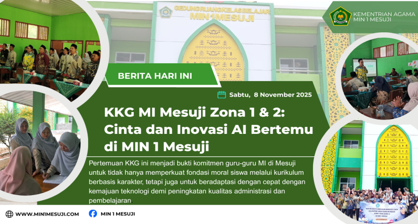 Mesuji, 8 November 2025 – Kelompok Kerja Guru (KKG) Madrasah Ibtidaiyah se-Kabupaten Mesuji Zona 1 dan 2 sukses menggelar pertemuan akbar di MIN 1 Mesuji. Acara ini bukan sekadar pertemuan rutin, melainkan sebuah lompatan besar dalam mengawinkan pendidikan berkarakter dan inovasi teknologi, di bawah kepemimpinan Kepala MIN 1 Mesuji, Bapak Nurkholis, S.Pd.I.