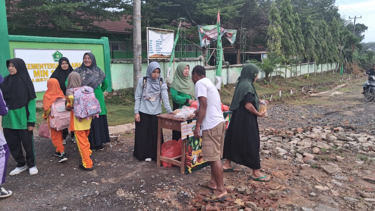 Program yang telah menjadi tradisi bulanan ini merupakan hasil kolaborasi hangat antara Dewan Guru MIN 1 Mesuji dan beberapa Wali Murid. Secara gotong royong, mereka menyiapkan paket sayuran dan makanan snack yang dibagikan kepada seluruh wali siswa yang mengantarkan anaknya sekolah.