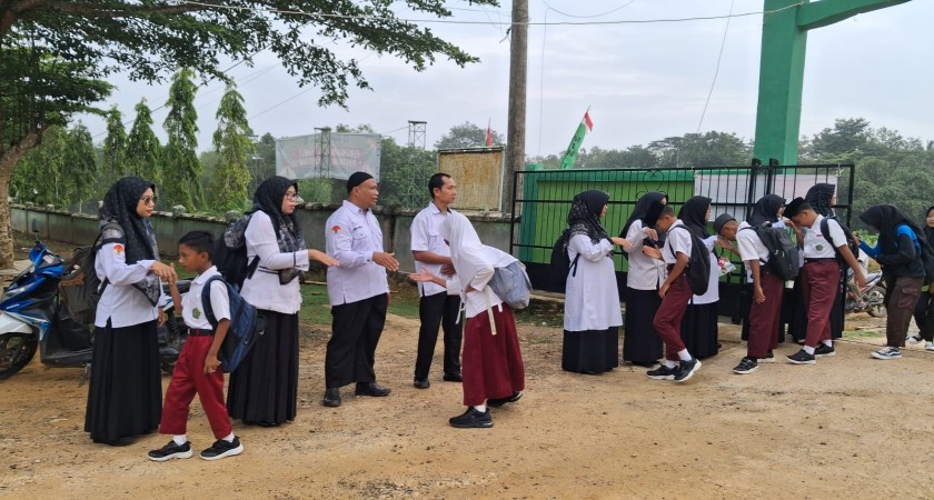 Tanamkan Kedisiplinan dan Kasih Sayang, Dewan Guru MIN 1 Mesuji Sambut Siswa di Gerbang Madrasah